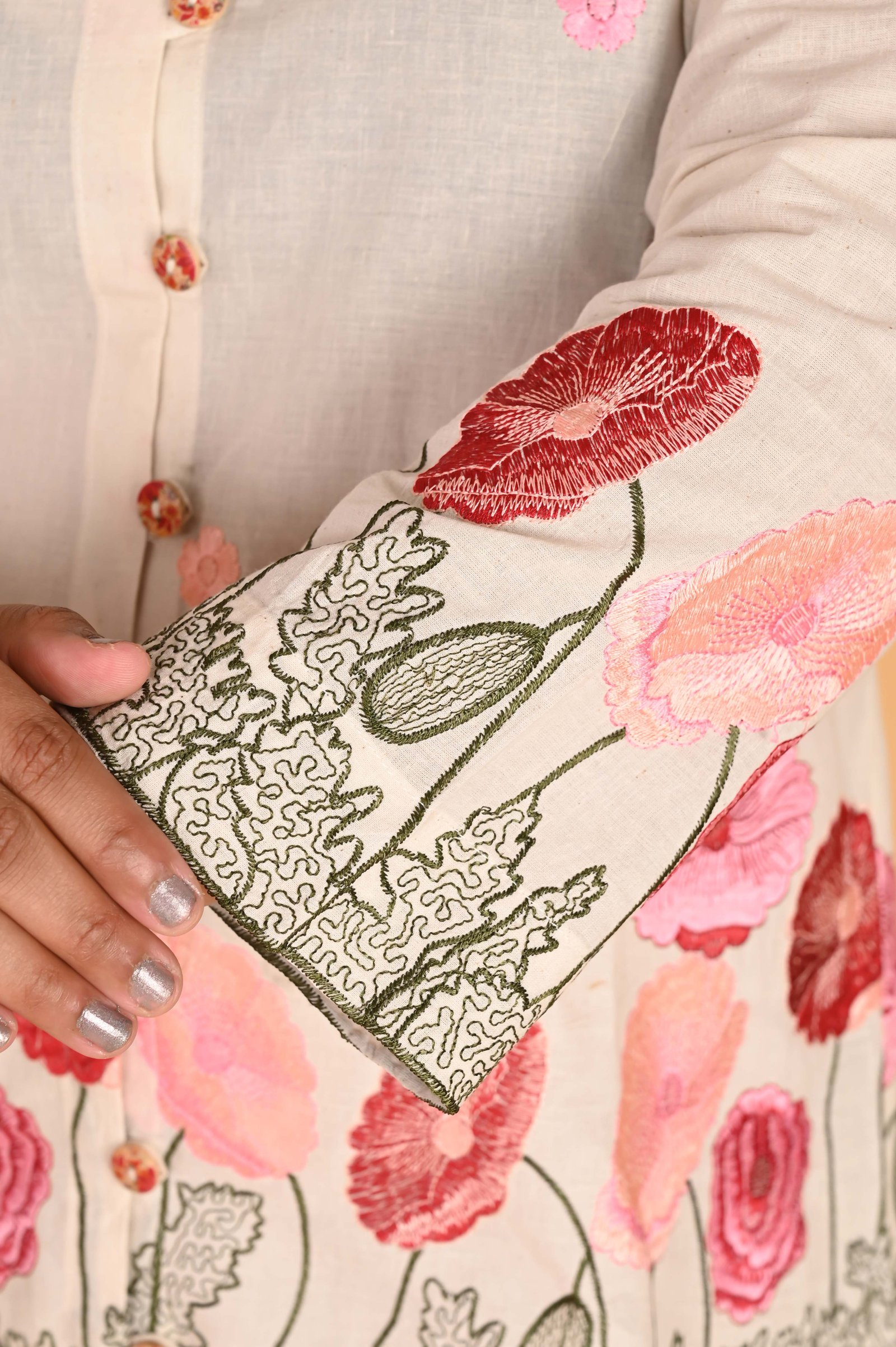 Inspired by timeless grace, Gulab is a celebration of softness, strength, and soulful craftsmanship. Made from breathable khadi cotton, the dress features a structured corset silhouette that flatters every curve while offering day-long comfort. Intricate hand embroidery adds a layer of artisanal charm, making each piece as unique as a blooming rose. Whether you're attending a festive gathering or a quiet evening event, Gulab wraps you in elegance that feels both rooted and radiant. Style it with jhumkas and kolhapuris for a classic look or modern heels and sleek accessories for a contemporary twist. Tradition never looked this chic.