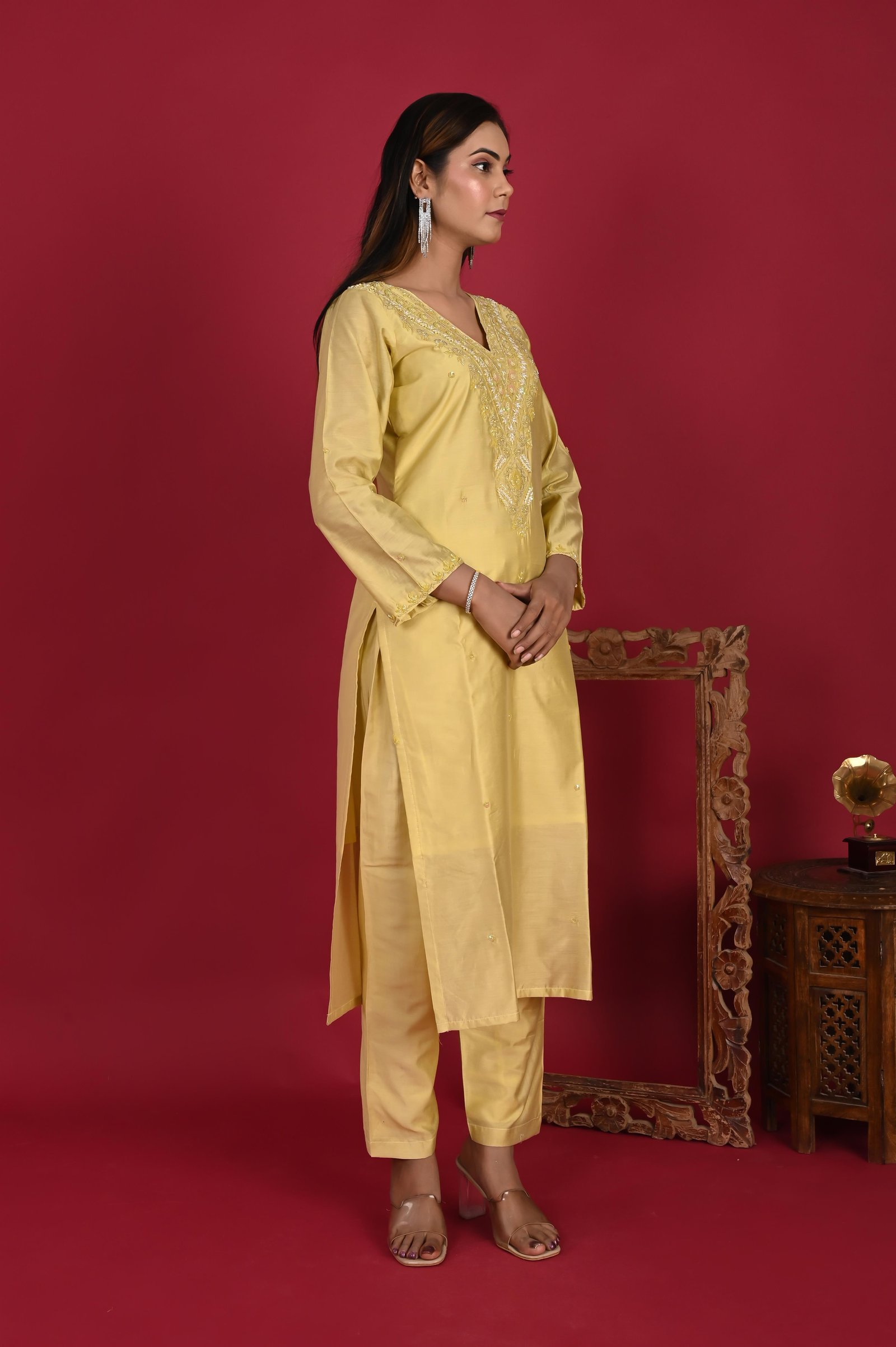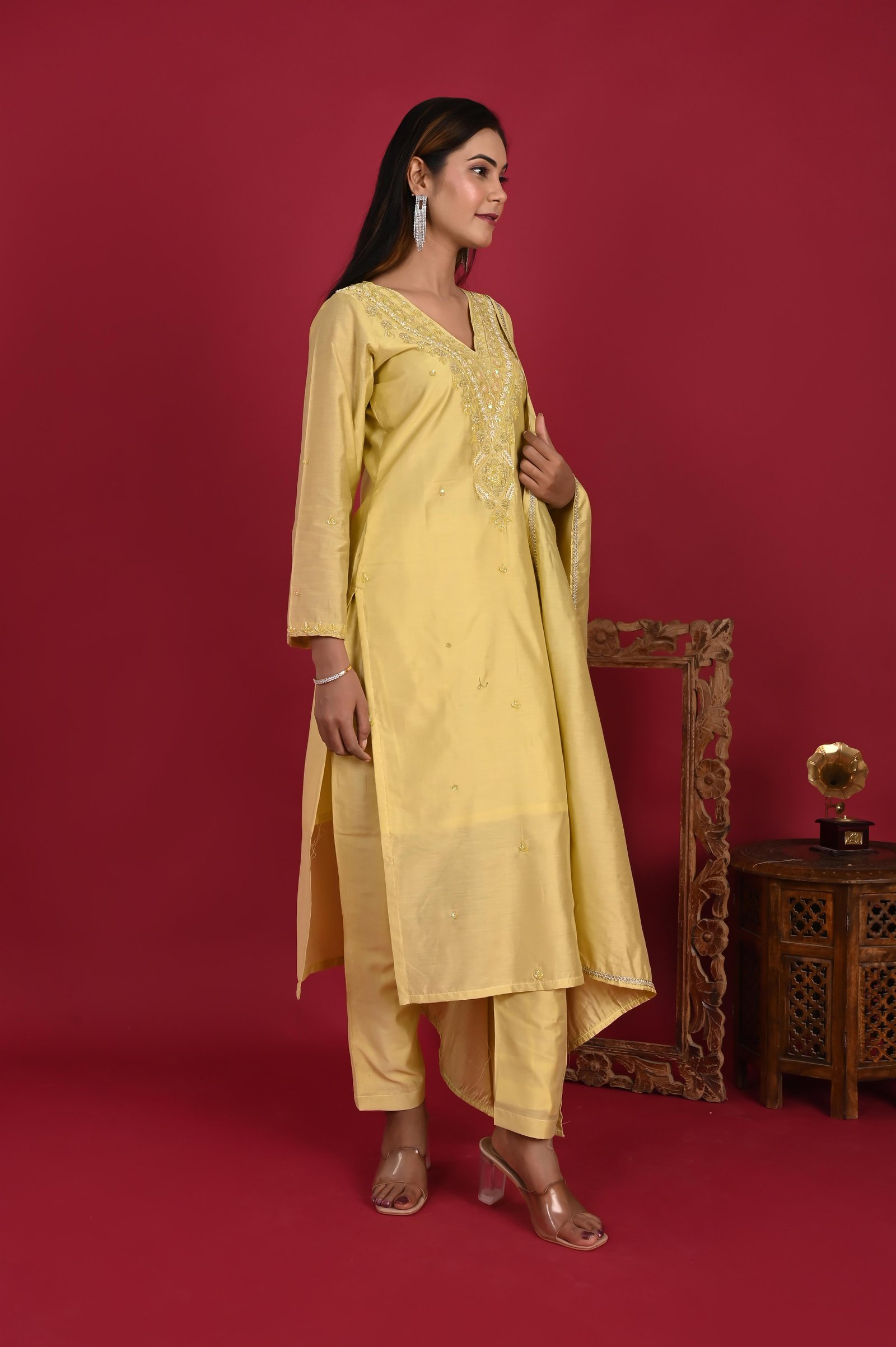 Paired with the kurta are matching royal crepe pants, also lined with cotton for added comfort. The clean silhouette of the pants balances the ornate detailing of the kurta, completing the look with understated sophistication. ✨ Dupatta Description ✨ The set is finished with a 2.5-meter organza dupatta, known for its sheer elegance and lightweight drape. The dupatta is highlighted with an all-over broad border, lending it a regal finish and tying the ensemble together beautifully. ✨ Style Note ✨ Perfect for weddings, festive celebrations, and traditional gatherings, this three-piece ensemble blends luxury craftsmanship with effortless grace. Style it with statement jewelry, embroidered juttis or heels, and a chic clutch to complete the look.